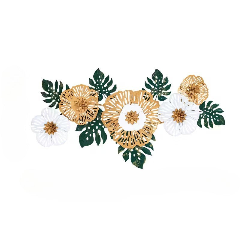 Metalowa Dekoracja Ścienna z Kwiatami i Liśćmi